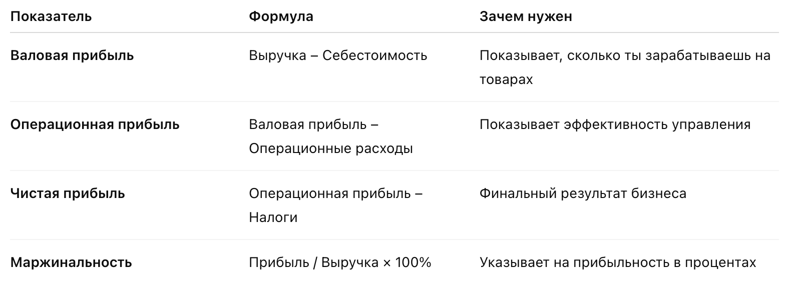 Чтобы P&L был не просто таблицей, а инструментом управления, рассчитывай метрики: