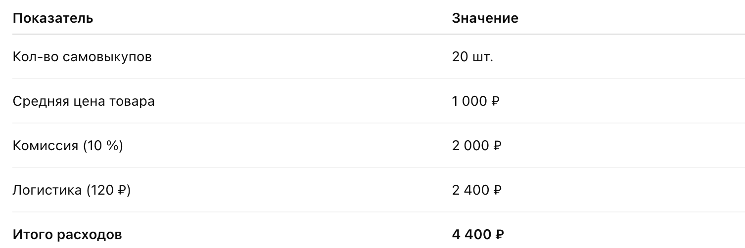 При марже 25 % чистая прибыль с тех же 20 шт. реальных продаж составит 5 000 ₽, то есть «окуп» возможен лишь если выкупы действительно простимулируют дальнейший органический спрос.